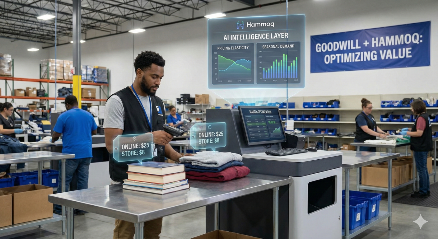 Hardware speeds intake. Hammoq AI optimizes pricing and routing to maximize Goodwill margins.